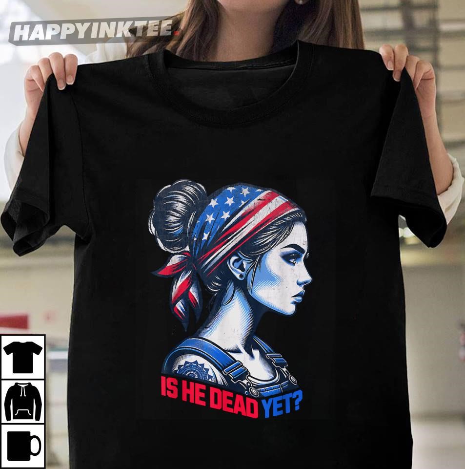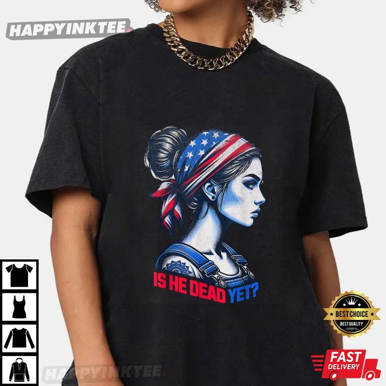 Is He Dead Yet Messy Hair Bun US Flag Turban Women T-Shirt