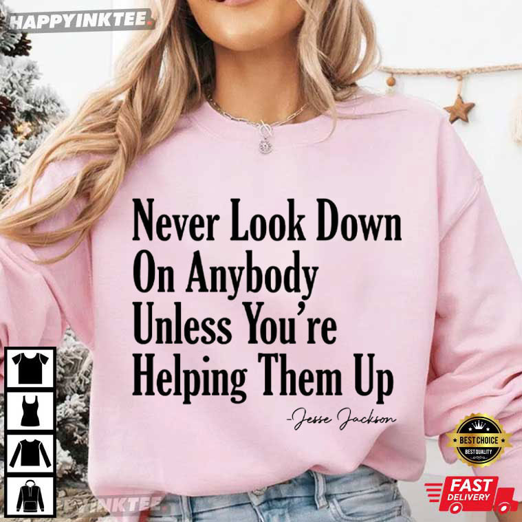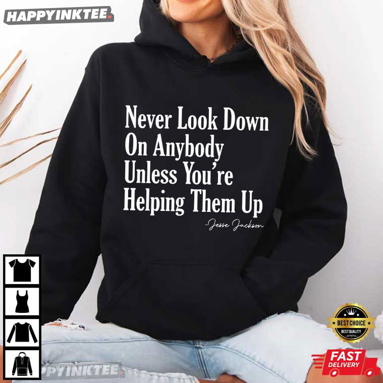 Powerful words. Timeless principle. Everyday reminder. One of the most significant sayings connected to civil rights leadership is featured on the Jesse Jackson Never Look Down On Anybody Civil Rights T-Shirt: “Never look down on anybody unless you’re helping them up.” – Jesse Jackson. It’s simple. It’s direct. And it carries decades of social justice history within a single sentence.