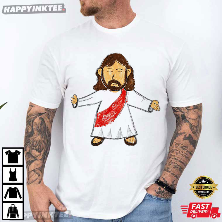 The Jesus Christ Cute Cartoon Art T-Shirt is a warm and uplifting design that brings a playful, heartfelt twist to a timeless symbol of faith. The artwork conveys a straightforward but potent message through a hand-drawn cartoon depiction of Jesus with extended arms and a kind look — love, kindness, and welcoming everyone with compassion.