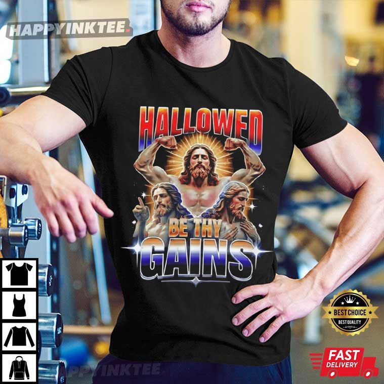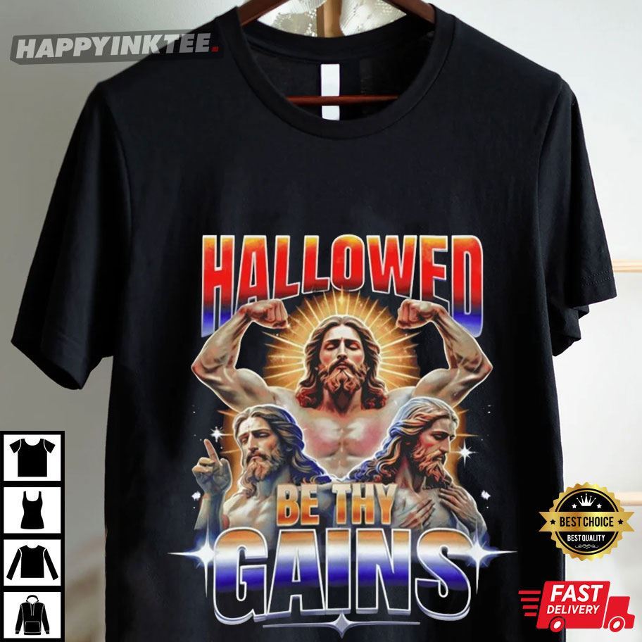 Jesus Hallowed Be Thy Gains Funny Gym Workout T-Shirt – t shirt printing, custom tee shirts