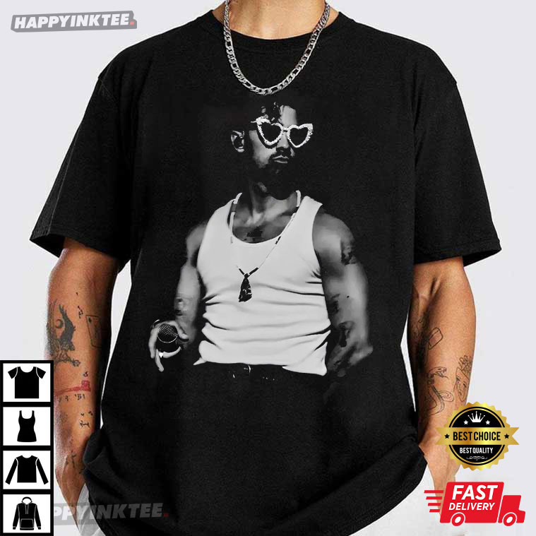This Joe Jonas vintage T-shirt shows off a classic black-and-white design of Joe looking cool in his signature retro heart-shaped shades, mixing that old-school concert feel with a fresh, modern twist.