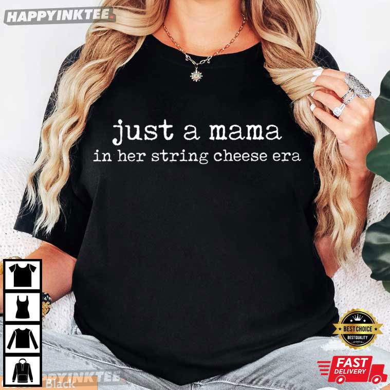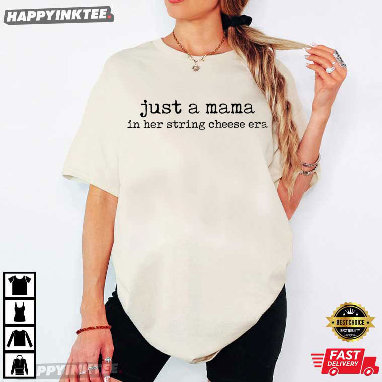 Just A Mama In Her String Cheese Era Gift for Mom T-Shirt – personalized t shirts for mother’s day, custom t shirts for mother’s day, happy mother’s day shirt ideas, best mothers day shirt, mother’s day shirts for mom and daughter