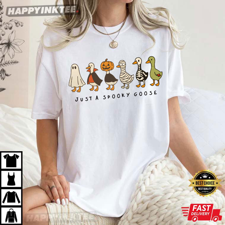 Just A Spooky Goose Funny Halloween T-Shirt – halloween tee shirts