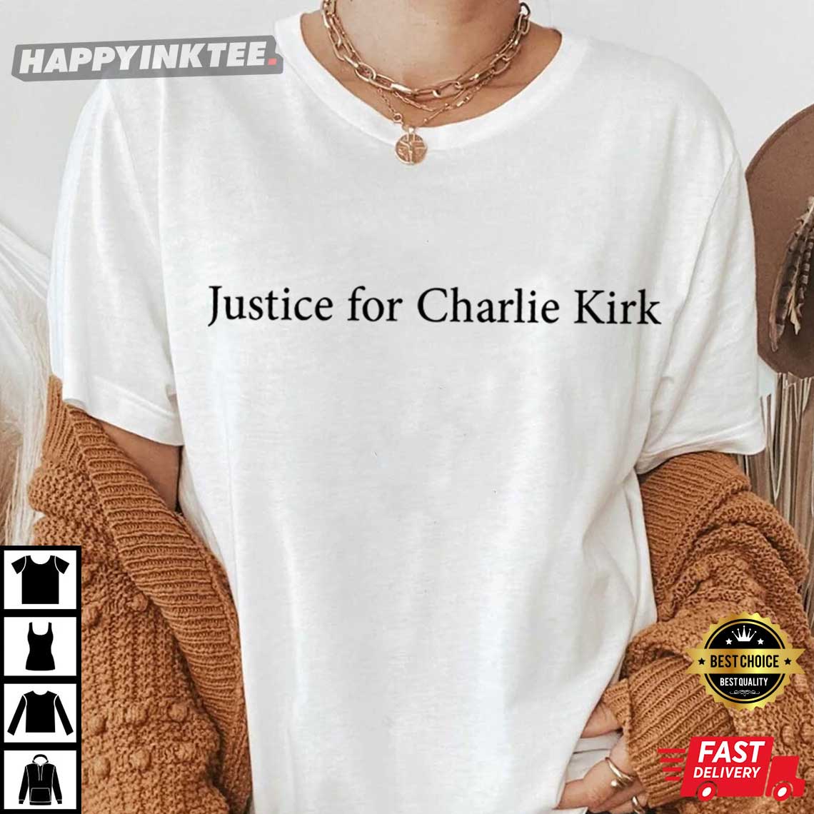 The Justice For Charlie Kirk T-Shirt says “Justice for Charlie Kirk” in simple but strong words, showing support for the conservative leader’s legacy of faith, family, and freedom.