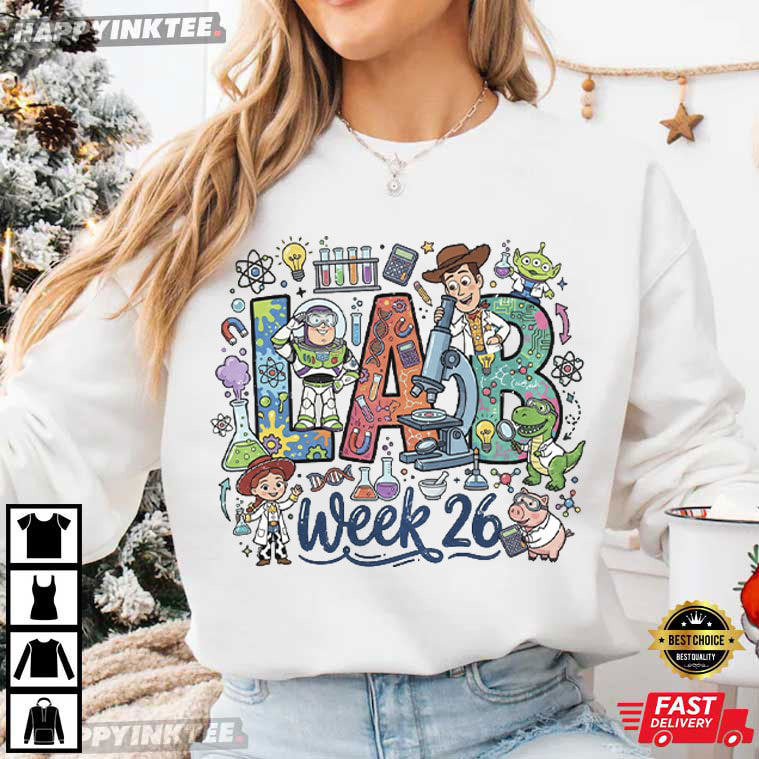 This Lab Week Lab Story Phlebotomist Medical Lab Toy Story T-Shirt combines science and narrative —a design that celebrates the real heroes behind the microscope through a nostalgic, animated-inspired lens.