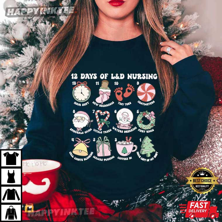 Celebrate the holidays with a laugh in this LD Nurse 12 Days Of Labor and Delivery Nursing Gift T-Shirt!
