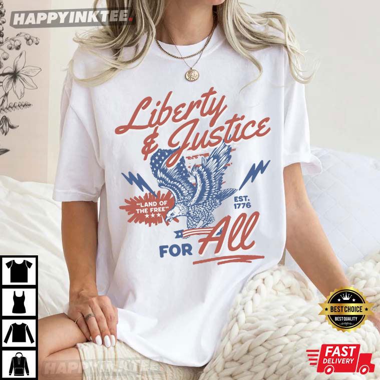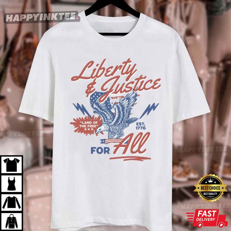Liberty And Justice For All 4th Of July Equal Rights Eagle T-Shirt – 4th of July shirts
