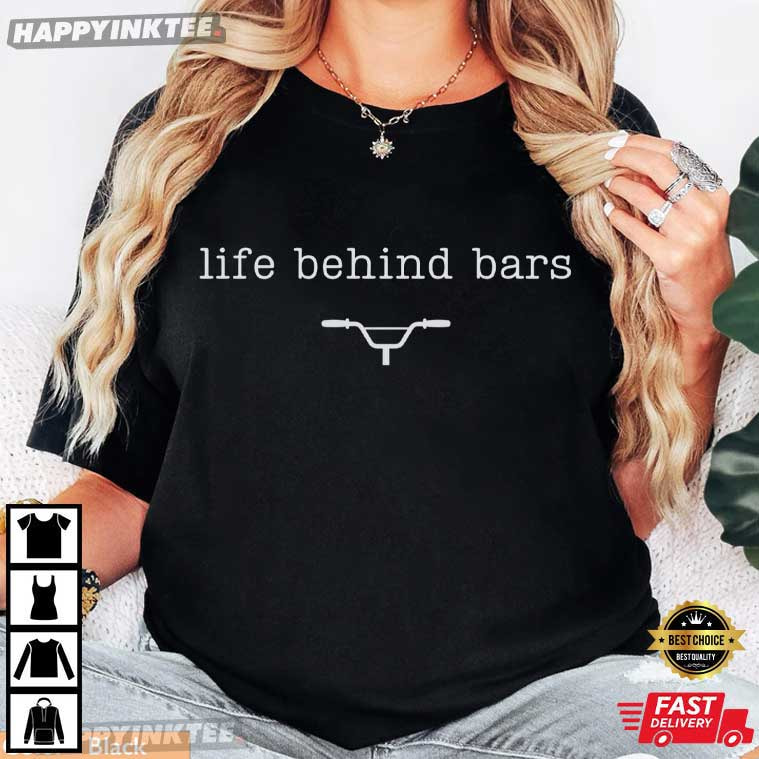 Life Behind Bars Bike Rider Mountain Biking Road Cycling Gifts T-Shirt – vintage graphic t shirts, unique graphic t shirts