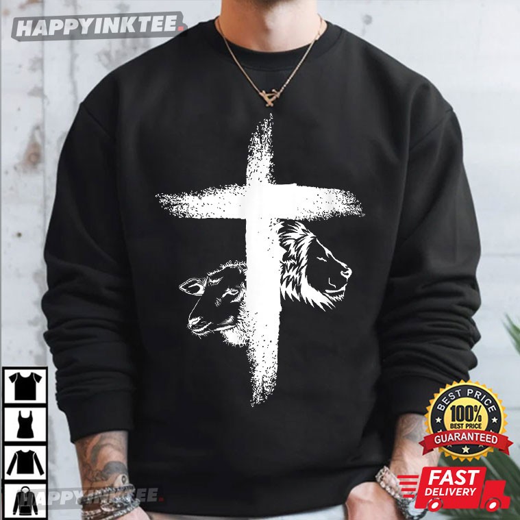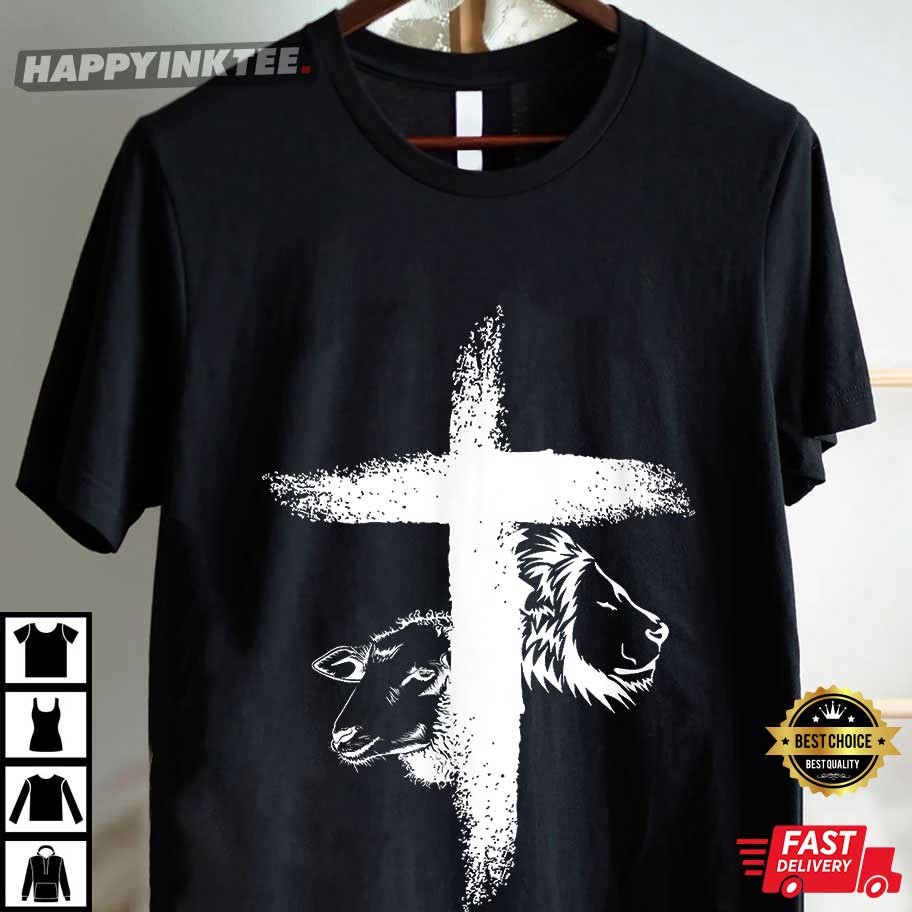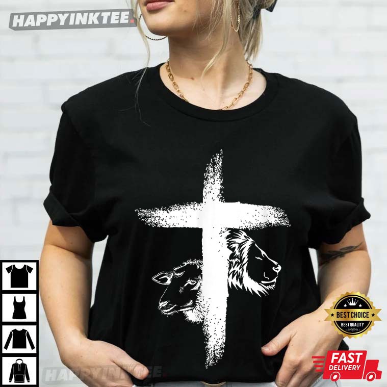 Use the Lion and Lamb Christian Cross T-Shirt to show off your faith and fortitude, a powerful symbol of Jesus Christ’s dual nature as both the mighty Lion of Judah and the gentle Lamb of God