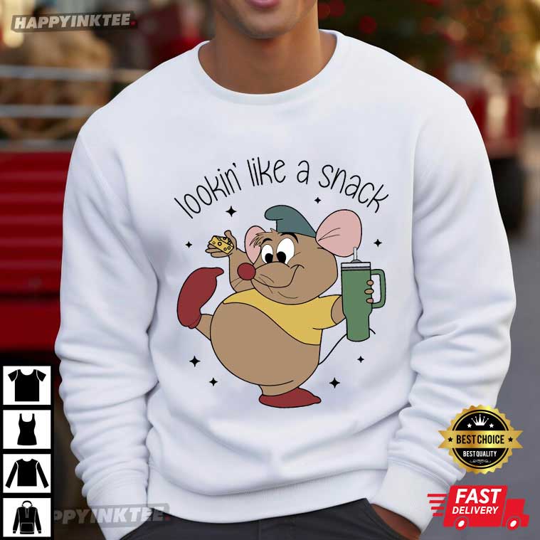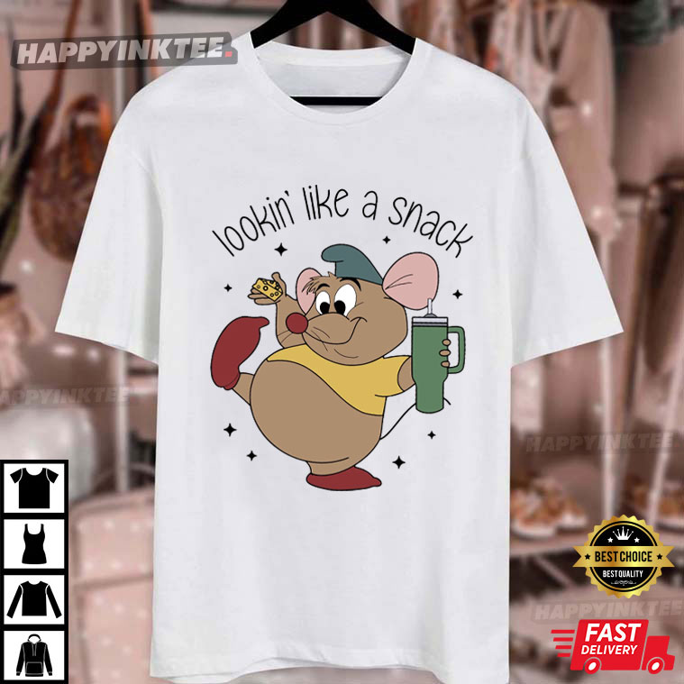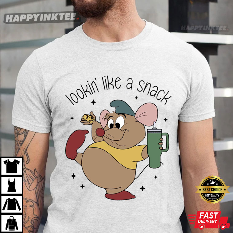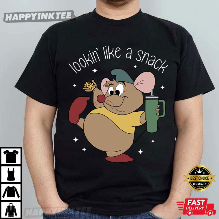 Check out Gus Gus, the adorable little mouse from Cinderella! This Lookin’ Like A Snack Gus Disney Vacation T-Shirt shows off his fun personality as he’s got cheese in one hand and a drink in the other—just like the snack he is!