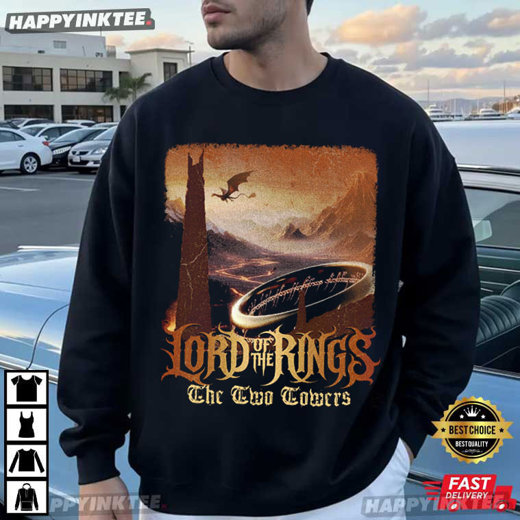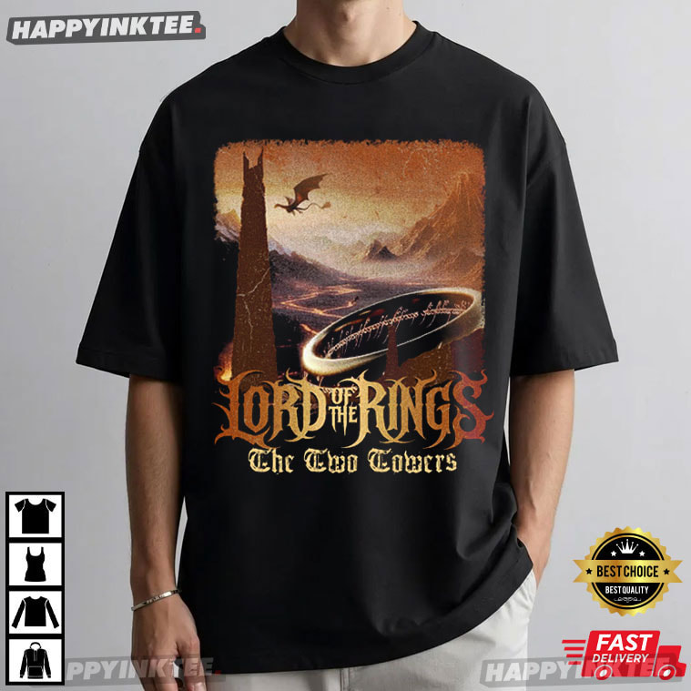 Journey back to Middle-earth with our Lord of the Rings The Two Towers Fantasy Movie Fan Gift T-Shirt — Any real LOTR fan who still gets thrills from the epic battles, stunning scenery, and unforgettable tale of The Two Towers must own this massive black graphic tee.