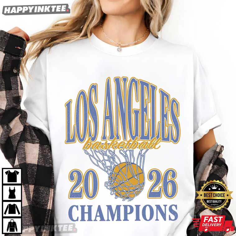 Los Angeles 2026 Champions Basketball Swish T-Shirt – basketball graphic t shirts, basketball team shirts, basketball t shirts for men, basketball fan tshirt, NBA graphic tees
