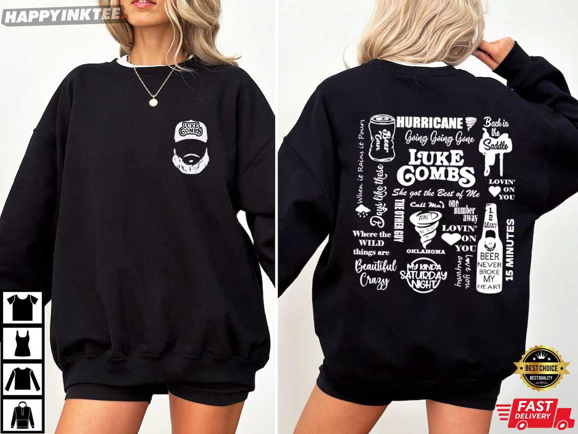 The Luke Combs Song Title Country Music Fan T-Shirt is designed for fans who understand every word and can relate to every chorus. It is genuine, audacious, and distinctly country. This t-shirt transforms Luke Combs’ greatest singles into a wearable chronology of contemporary country music with its crisp front and lyric-rich back.