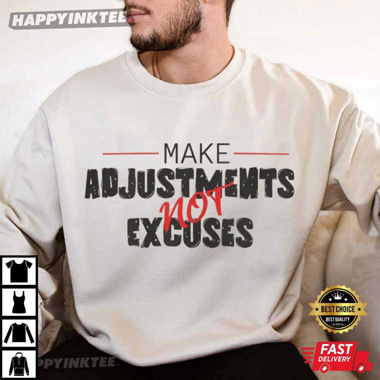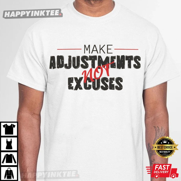 Make Adjustments Not Excuses Funny Saying T-Shirt – retro graphic t shirts, unique graphic t shirts, retro tee shirts, vintage 80s t shirts