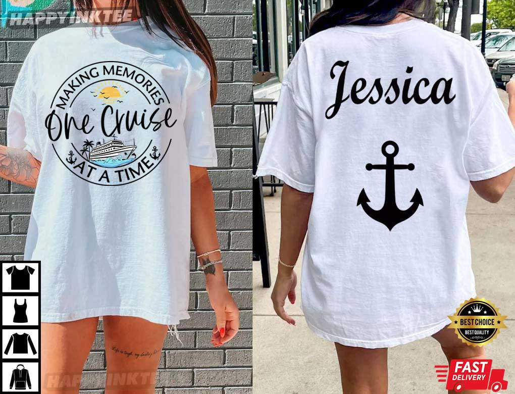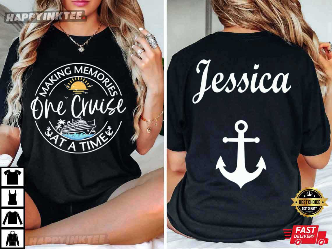The Making Memories One Cruise Family Matching Custom Name T-Shirt is the perfect outfit for families and friends setting sail on a memorable vacation together — designed with a classic nautical theme, this shirt honors the thrill of taking a cruise, sunny excursions, and treasured moments spent at sea. By adding a custom name, the Cruise Family Matching shirt becomes a personalized keepsake that commemorates a specific trip, family vacation, or cruise event.