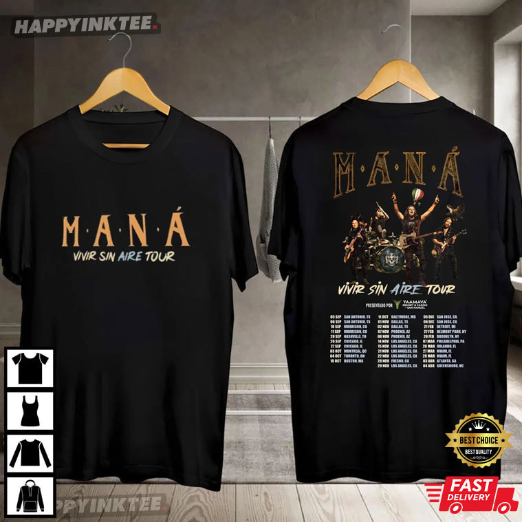 Mana Band Concert Vivir Sin Aire Tour Latin Rock T-Shirt – music t shirts, graphic band shirts