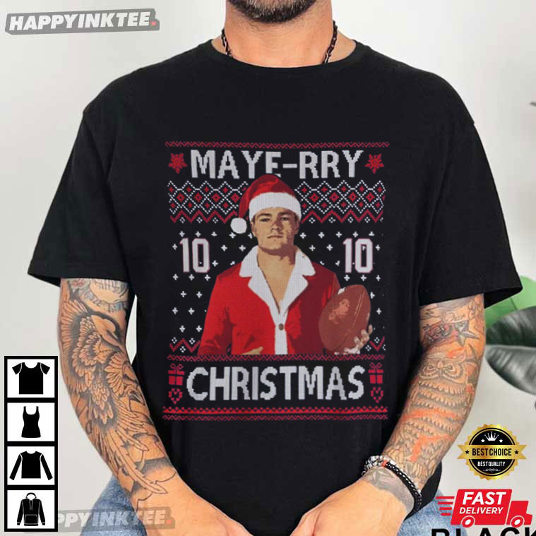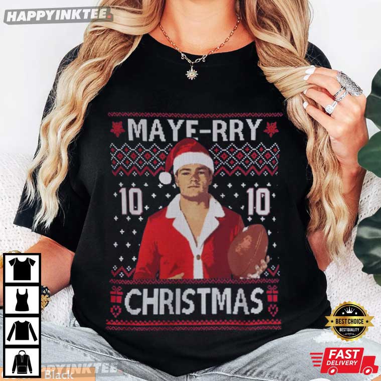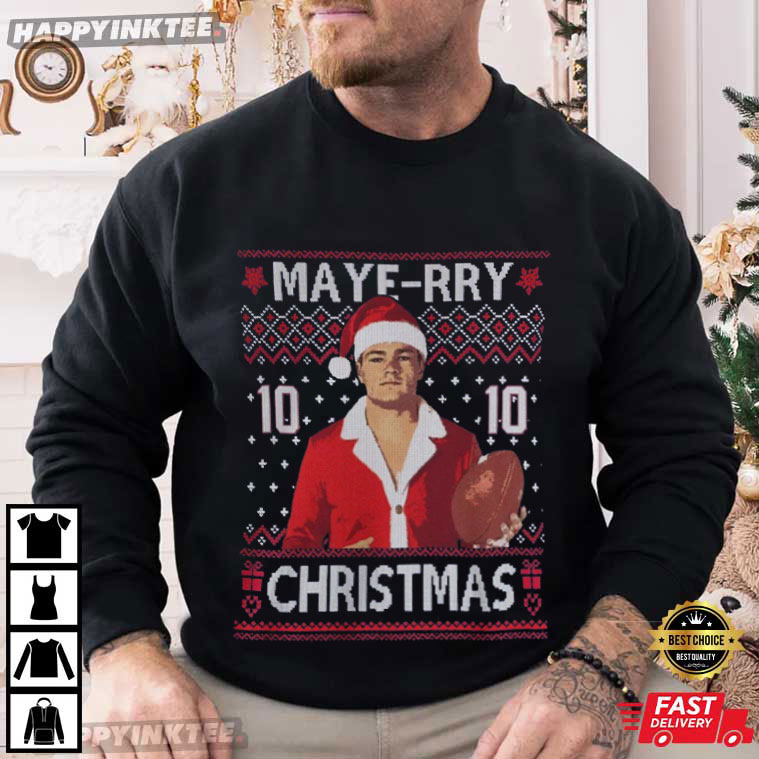 Maye-Rry Christmas Drake Maye Funny Holiday T-Shirt – funny christmas shirts, christmas sweat shirts