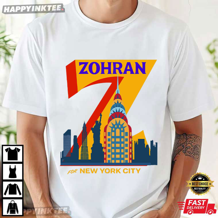 This Mayor Mamdani Zohran for New York City Progressive Democrats DSA T-Shirt captures the energy and optimism of a city that believes in people power. Designed with a bold retro aesthetic, It has the name ZOHRAN displayed over a vivid “Z” design and a vibrant skyline with the Statue of Liberty and the Chrysler Building, which stand for liberty, tenacity, and New York pride. Whether you’re volunteering, canvassing, or just walking through your neighborhood, it’s a way to show what side of progress you’re on.
