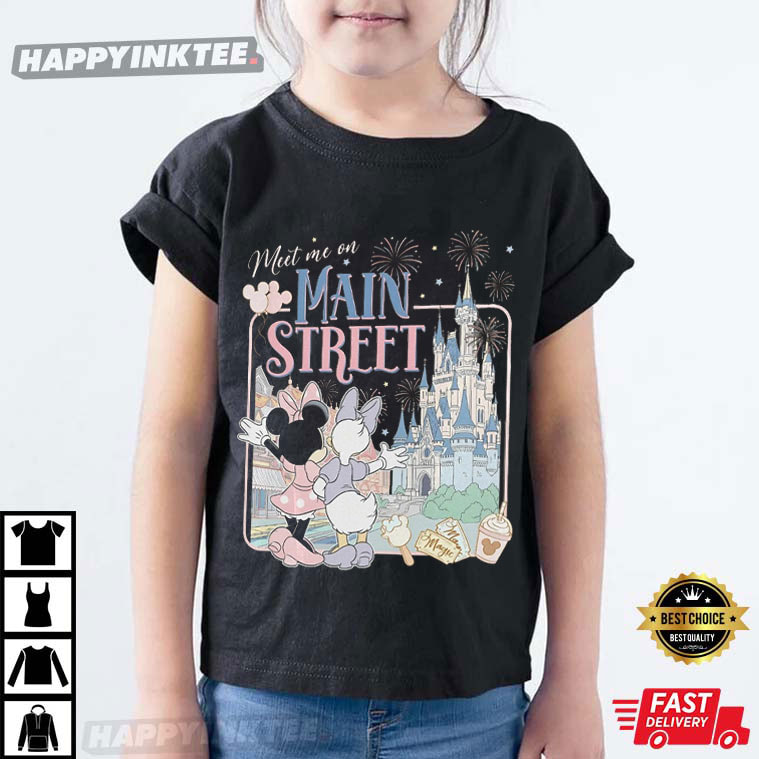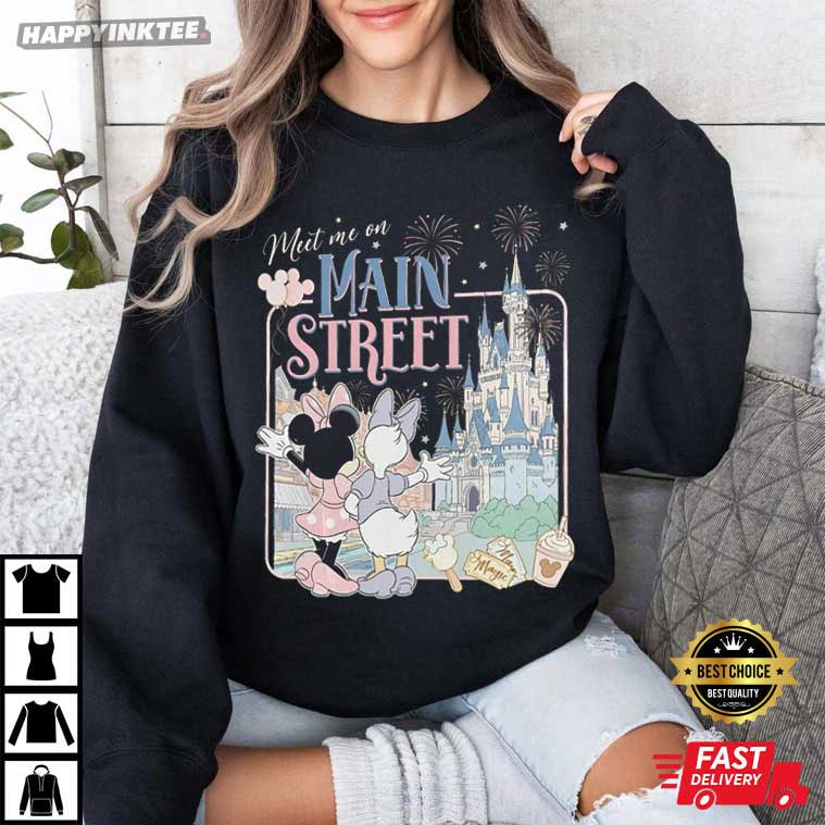 The phrase “Meet Me on Main Street” has a certain enchantment. For fans of Disney, it’s more than just a place; it’s an emotion. The Meet Me On Main Street Minnie And Daisy Besties Disney T-Shirt captures that unforgettable first glimpse of the castle, the sparkle of fireworks overhead, and the joy of sharing it all with your best friend.