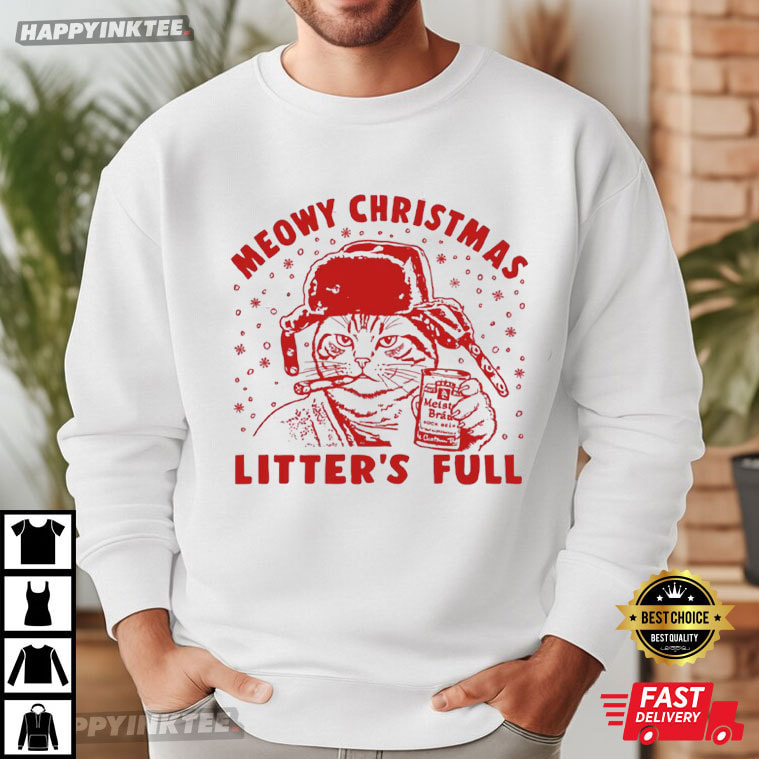 Meowy Christmas Litters Full Funny Xmas Cat Lovers T-Shirt – christmas sweat shirts, funny christmas shirts, christmas tree shirt, christmas t shirts family, christmas themed shirts