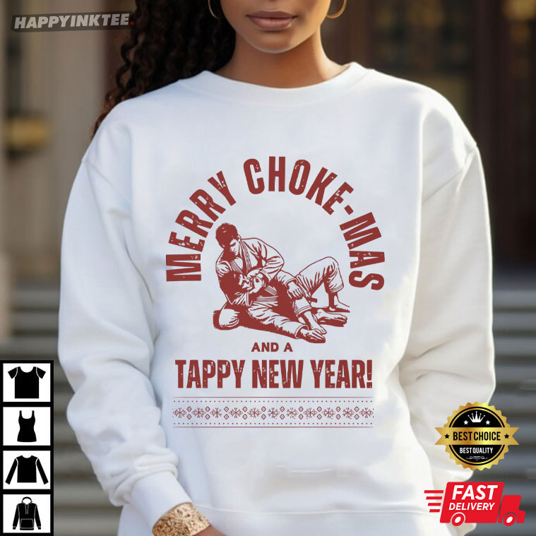 Merry Chokemas And A Tappy New Year Funny Jiu Jitsu Christmas T-Shirt – funny christmas shirts, christmas sweat shirts