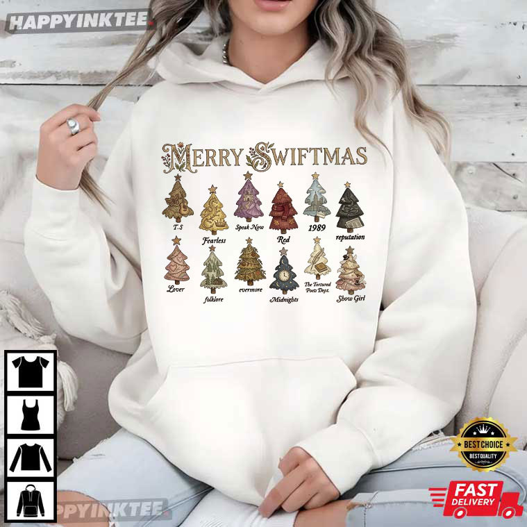 Merry Swiftmas Christmas Tree Eras Album Music Lover Xmas T-Shirt – funny christmas shirts, christmas sweat shirts