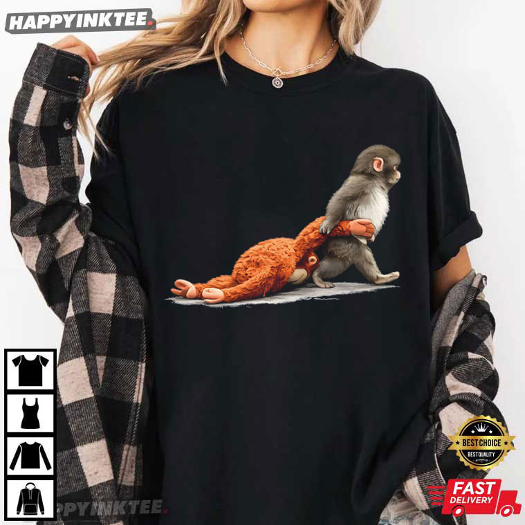 Monkey Punch Baby Monkey Holding Plush Toy Animal Lover T-Shirt – vintage graphic t shirts, unique graphic t shirts