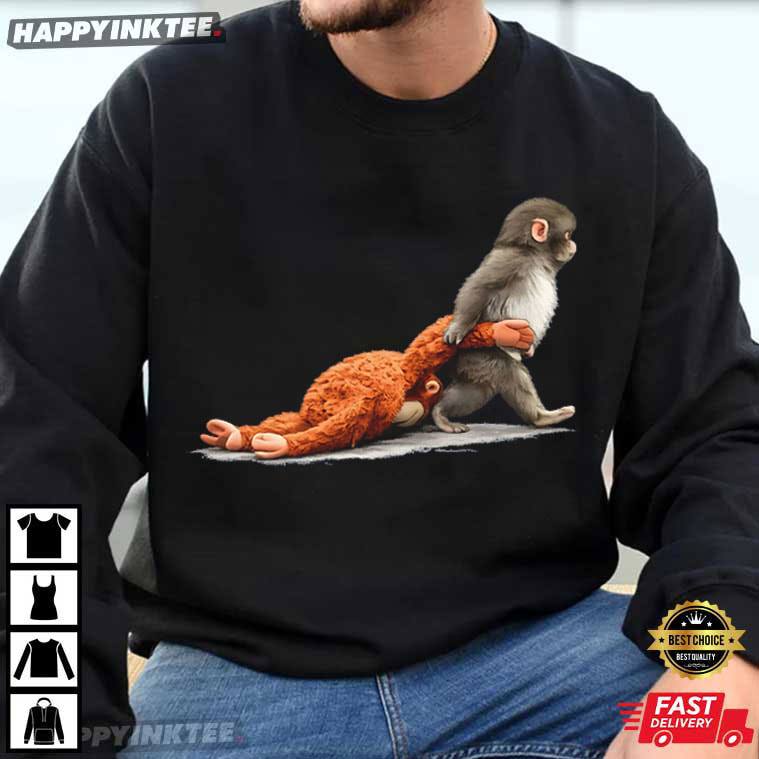 Tiny attitude. Big personality. Maximum cuteness. The Monkey Punch Baby Monkey Holding Plush Toy Animal Lover T-Shirt captures a playful and slightly mischievous moment in the most adorable way. This design brilliantly combines sweetness and humor, showing a young monkey strolling with confidence while holding a plush toy that appears to have just survived some intense loving. It’s cute… with a little bit of sass.