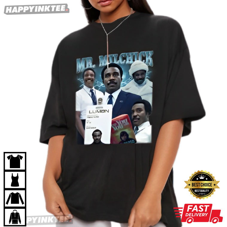 Tramell Tillman plays Mr. Milchick, a character in the Apple TV+ series Severance. He is devoted to Lumon and oversees the severed floor. The character has been positively received, especially Tillman’s performance. His various personas—from his business attire to his more relaxed, eerie moments—are captured in this design. As Severance gains a dedicated cult following, this one-of-a-kind streetwear piece is perfect for die-hard fans who appreciate the show’s surreal storytelling.