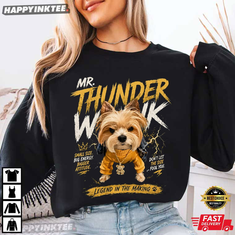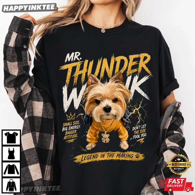 Meet the ultimate small dog with big personality — this Mr Thunder Wink Legend In The Making Dog Lover T-Shirt is perfect for Yorkie owners, Yorkshire Terrier fans, and anyone who knows that tiny pups often have the biggest attitudes. If you’ve got a little dog who thinks he runs the world, this Mr. Thunder Wink shirt is made for you. Wear your pride for your tiny legend loud and proud!
