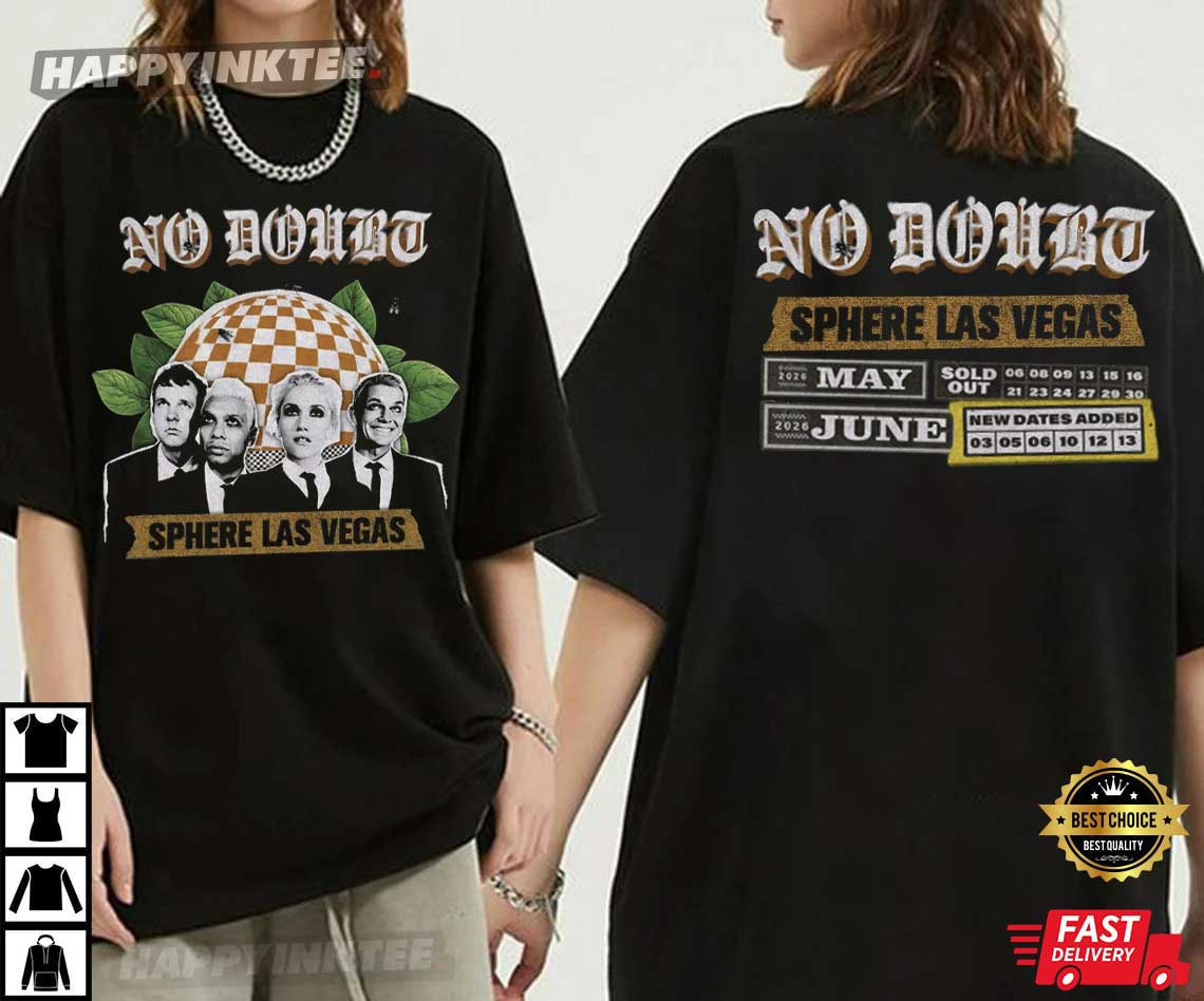Step into the energy of live music and iconic ‘90s alternative rock with this bold No Doubt Band Sphere Las Vegas Rock Music Tour T-Shirt. Motivated by the band’s distinct aesthetic and timeless sound, this graphic embodies the essence of a band that transformed pop, rock, and ska.