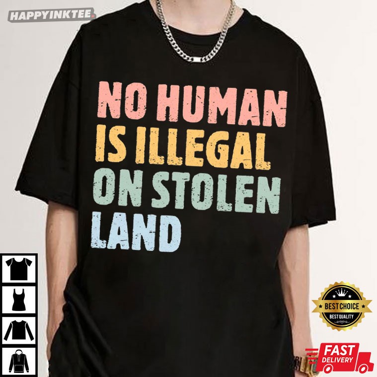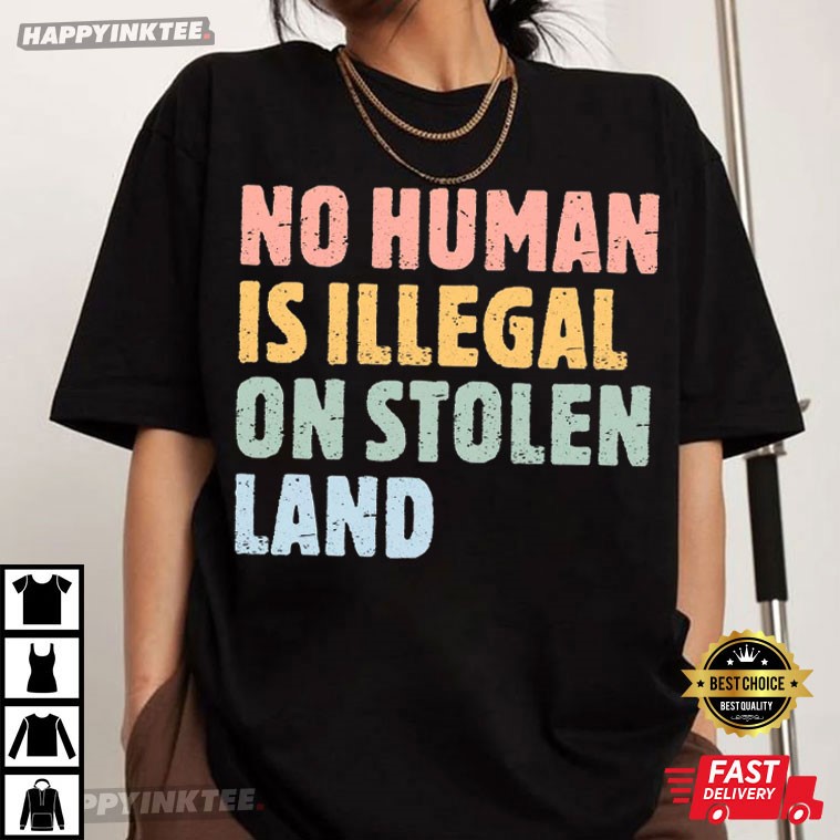 No Human Is Illegal On Stolen Land Social Justice T-Shirt – t shirt printing, custom tee shirts