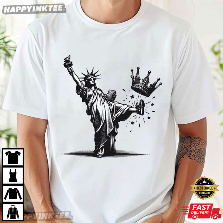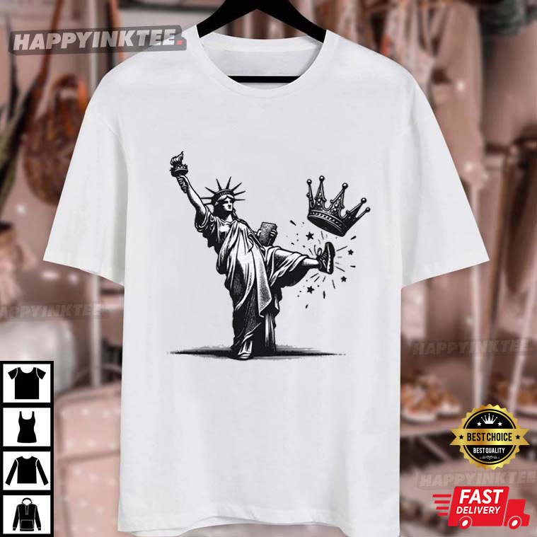 The black-and-white art shows Lady Liberty in mid-motion, raising her torch high and kicking away a broken crown. This no kings design tee is a strong artistic representation of freedom from oppression and self-rule. It’s more than just a political message; it’s a celebration of how much people still want to be treated equally, with respect, and with the freedom to choose their own future.
