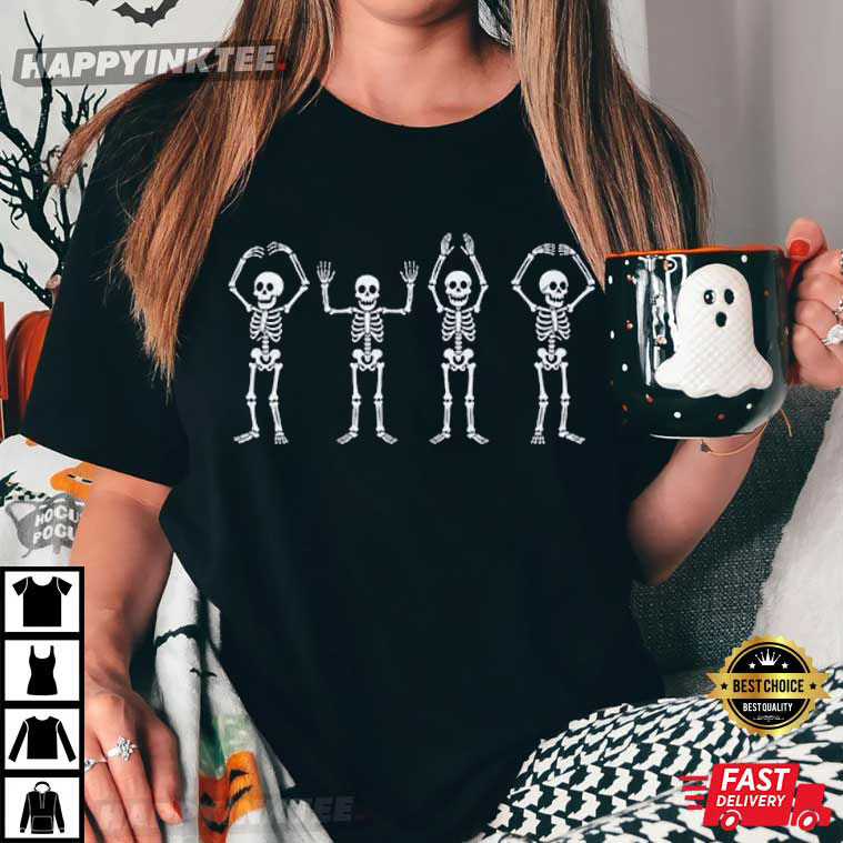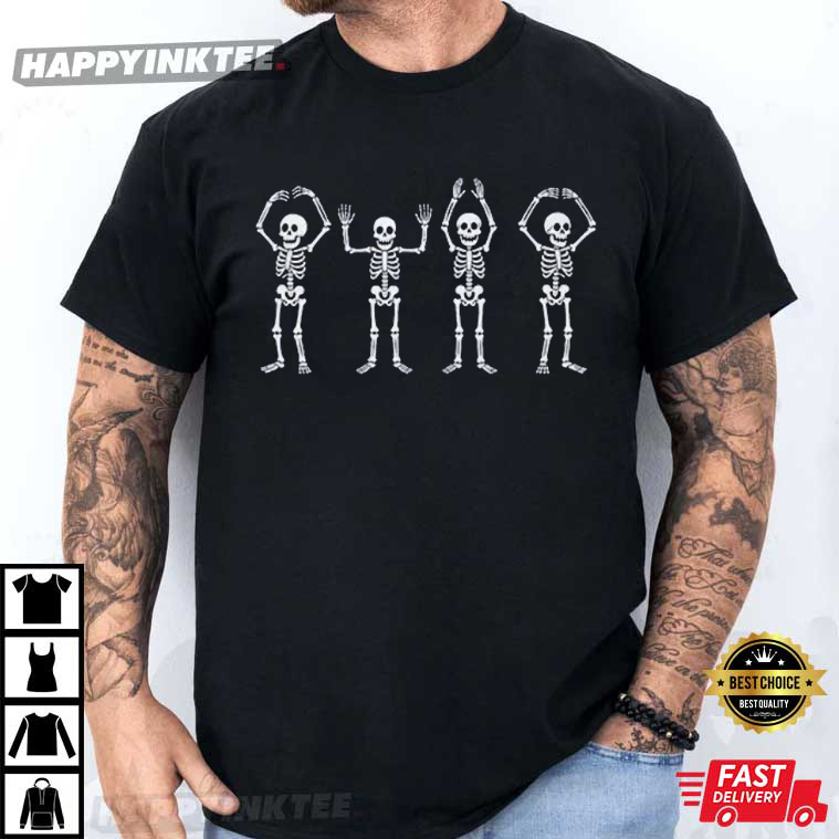 Rep your Buckeye spirit with a fun Halloween vibe in the Ohio State Skeleton T-Shirt! It shows off four skeletons doing the classic O-H-I-O pose, mixing college football spirit with some fun Halloween flair.