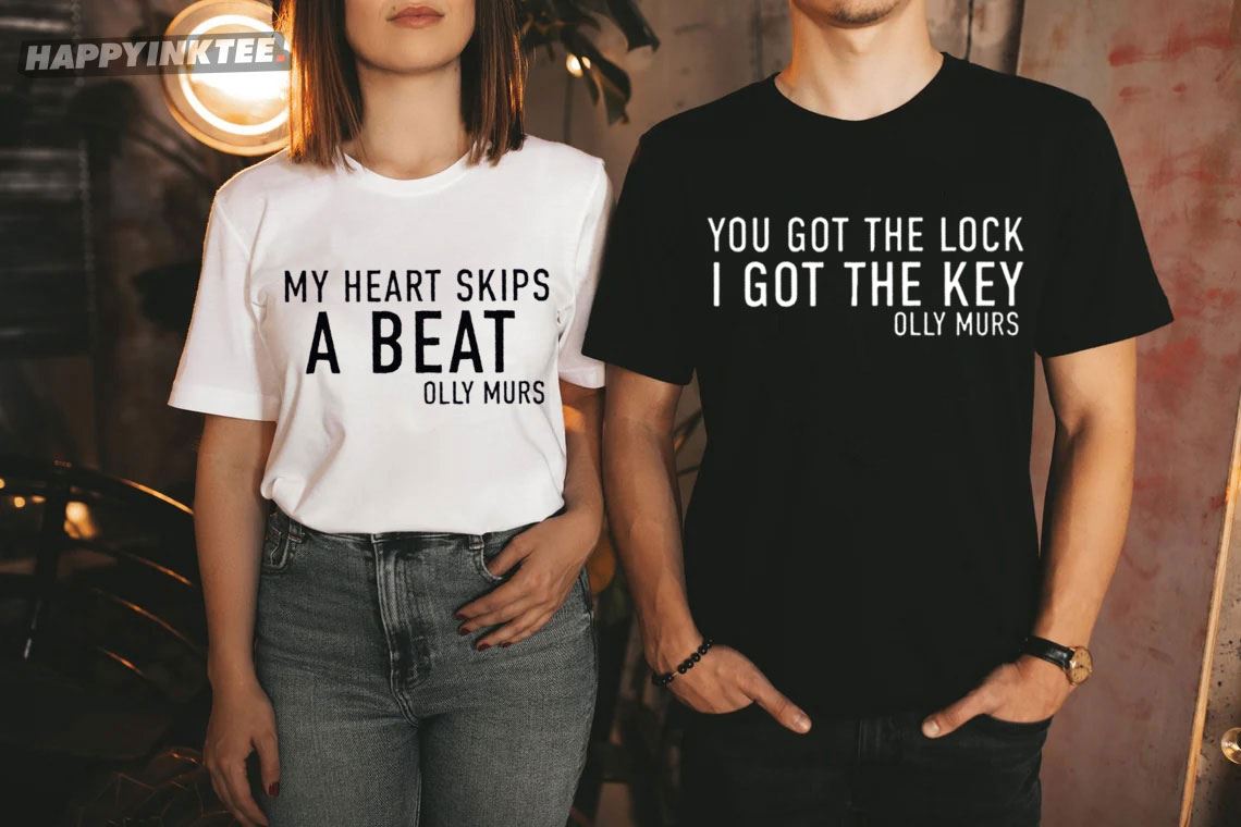 Olly Murs has been stealing hearts since his X Factor days with catchy songs like “My Heart Skips A Beat,” and this Olly Murs My Heart Skips A Beat You Got The Lock I Got The Key Couple Shirts make it easy to show off that love in style.
