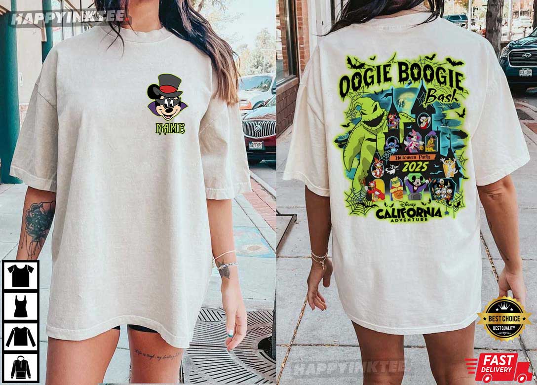 Get pumped for the spookiest season with our Oogie Boogie Bash Disneyland Halloween Party T-shirt! It is a great way to remember your trip to Disney’s California Adventure for their awesome Halloween event.