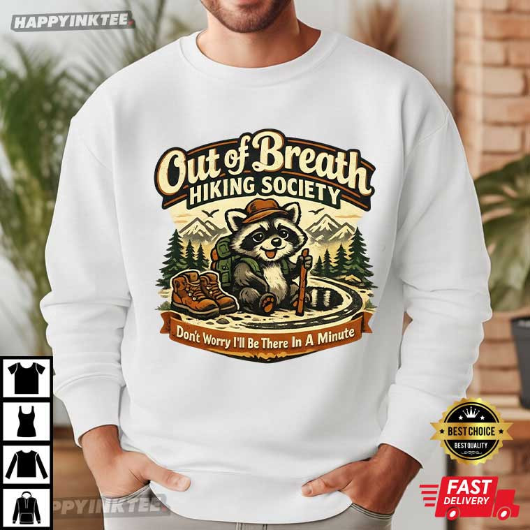 Out of Breath Hiking Society Funny Raccoon Hiking T-Shirt – vintage graphic t shirts, unique graphic t shirts