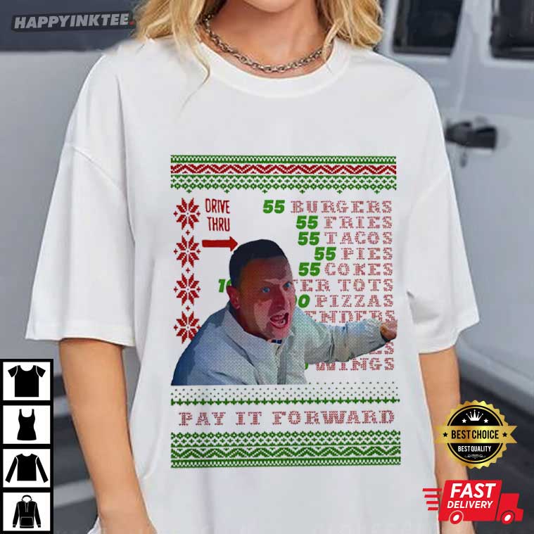 The Pay It Forward Ugly Christmas Meme Movie T-Shirt is a great way to combine Christmas cheer, internet humor, and classic movie memes. This shirt is made to look like a traditional ugly Christmas sweater, with holiday motifs and a famous meme moment that fans will know right away. It has a lot of noise, is humorous, and is weirdly good for you, which is what holiday meme fashion is all about.