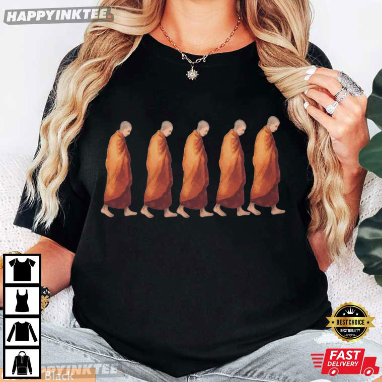 The Peace And Love Mindful Monks Walking T-Shirt is for people who value stillness, intention, and significance in a world that moves quickly. It is quiet, reflective, and very calming. This sculpture doesn’t yell for attention. Instead, it makes the wearer and anybody who sees it stop and think. It is a T-shirt that talks softly yet has a lot of meaning.