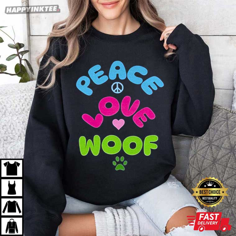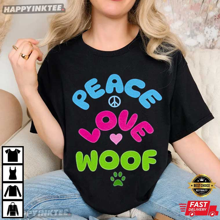 Peace Love Woof Cute Dog Lover T-Shirt – vintage graphic t shirts, unique graphic t shirts