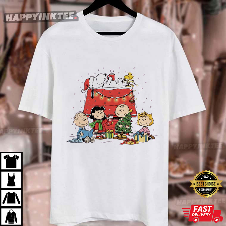 Join in on the fun of the holidays with Snoopy, Charlie Brown, and all your favorite Peanuts characters! This Peanuts Christmas T-Shirt totally nails that cozy holiday vibe — you’ve got Snoopy chilling on his decorated doghouse with Woodstock, while Charlie Brown, Lucy, Linus, and Sally are spreading all the Christmas cheer below.