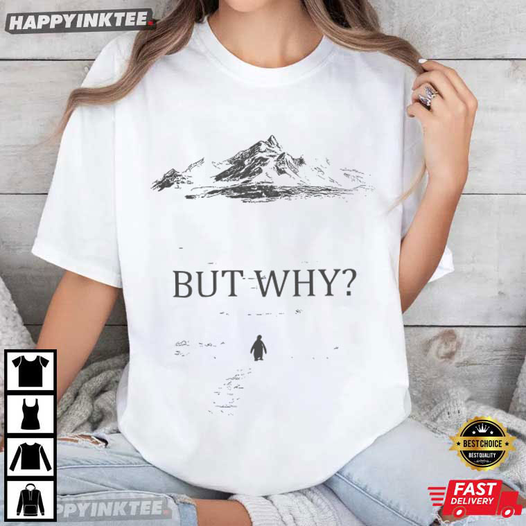 The Penguin But Why Mountain Viral Meme Motivational T-Shirt captures the quiet, hilarious moment we all recognize—the pause before doing something difficult, unnecessary, or oddly meaningful. Minimal, ironic, and instantly relatable, this design turns a simple question into a full-blown mood. This design thrives on contrast. Penguins aren’t mountain climbers. They’re not built for grand journeys or abstract purpose. And yet—there it is—walking forward anyway.