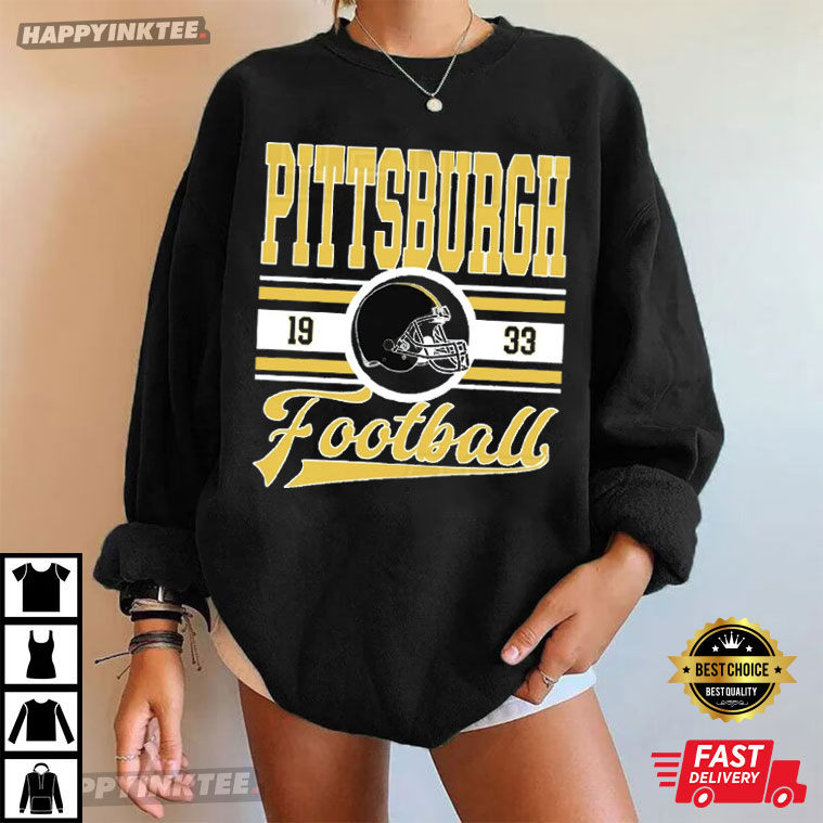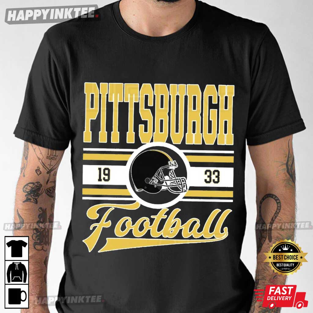 Show off your love for one of the NFL’s legendary teams with this awesome Pittsburgh Football Gift For Fan T-Shirt. This shirt, showcasing the year 1933—the year the Pittsburgh Steelers were born—along with a classic black and gold football helmet graphic, is a nod to almost a hundred years of unforgettable football moments.