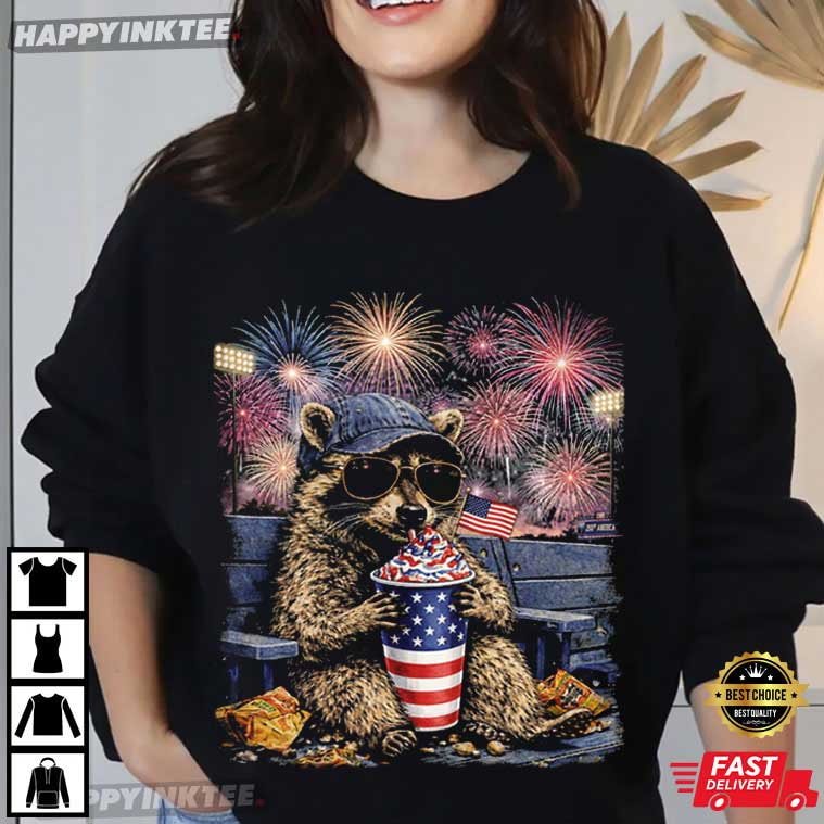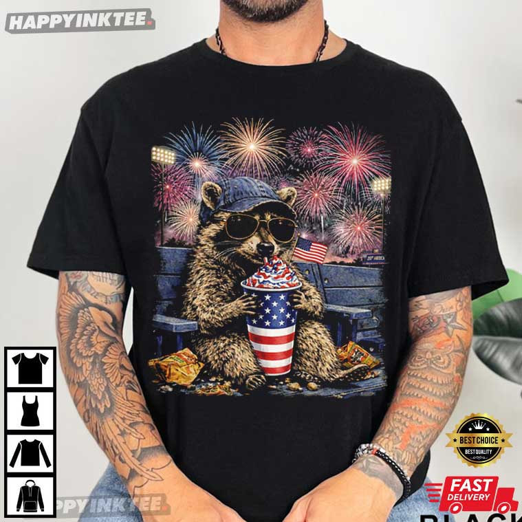 Raccoon Drinking USA 250th Anniversary 4th Of July T-Shirt – 4th of july graphic tees, fourth of july shirts funny, 4th of july funny t shirts