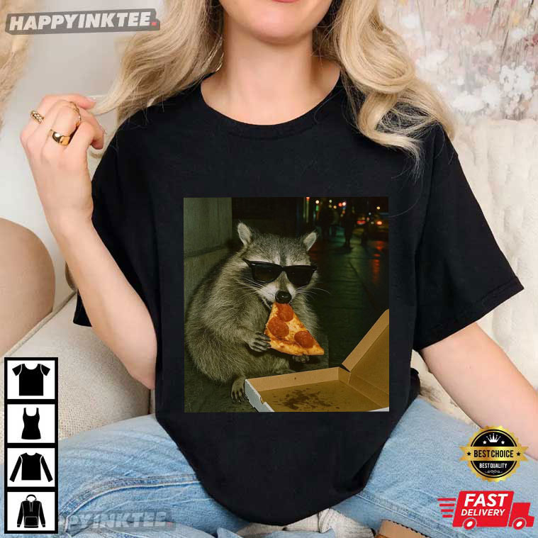Raccoon Eating Pizza Funny Meme T-Shirt