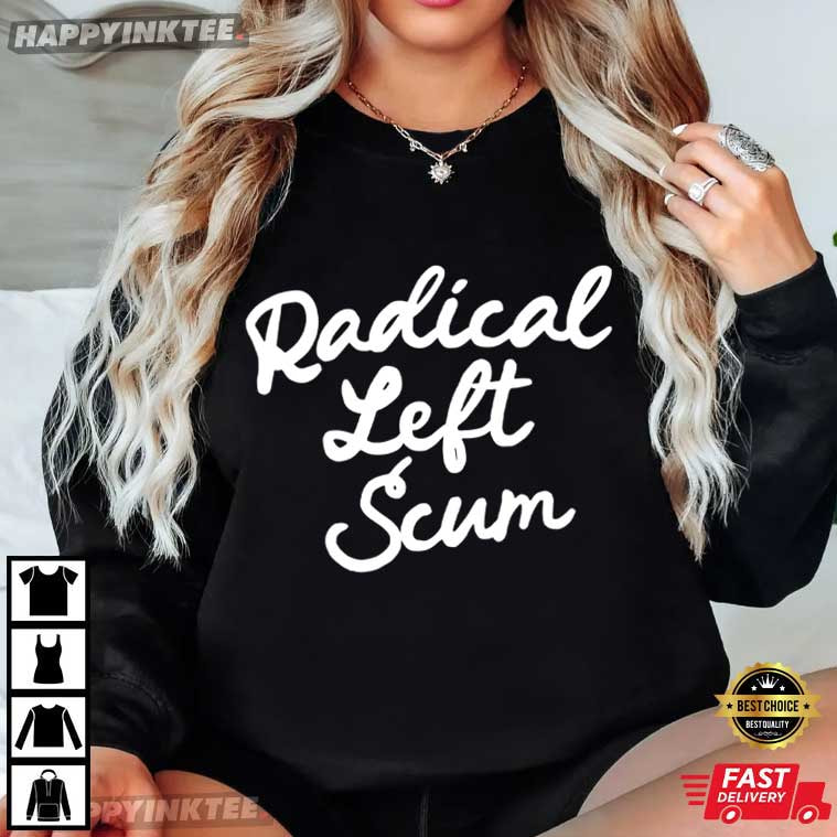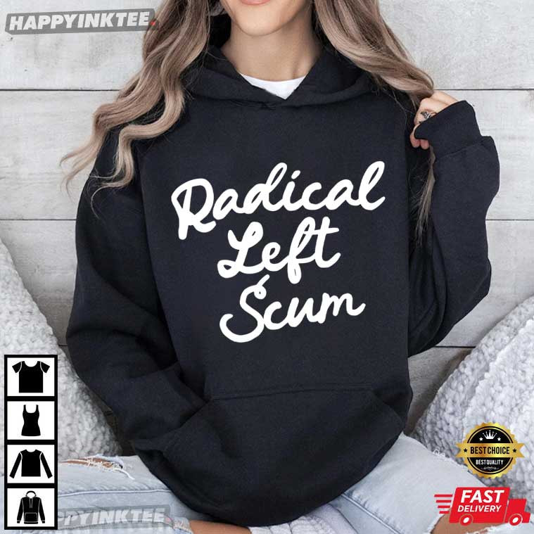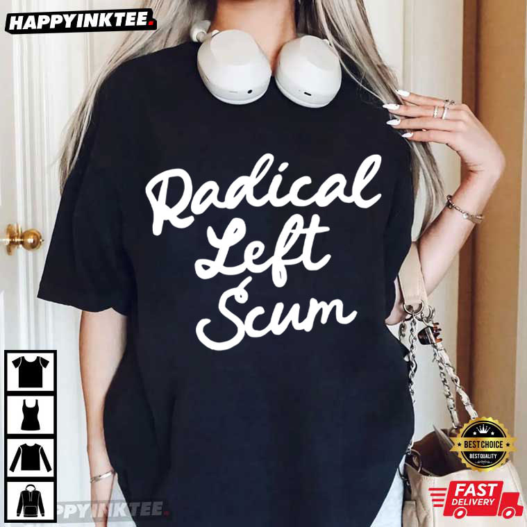 Big words, no regrets. Sharp, self-aware satire is created from a loaded political word in the Radical Left Scum Funny Politics T-Shirt. “Radical Left Scum” has often been used as an insult in political discourse. It’s ironic, confrontational, and intentionally playful—made for people who understand political humor and aren’t afraid to own it.