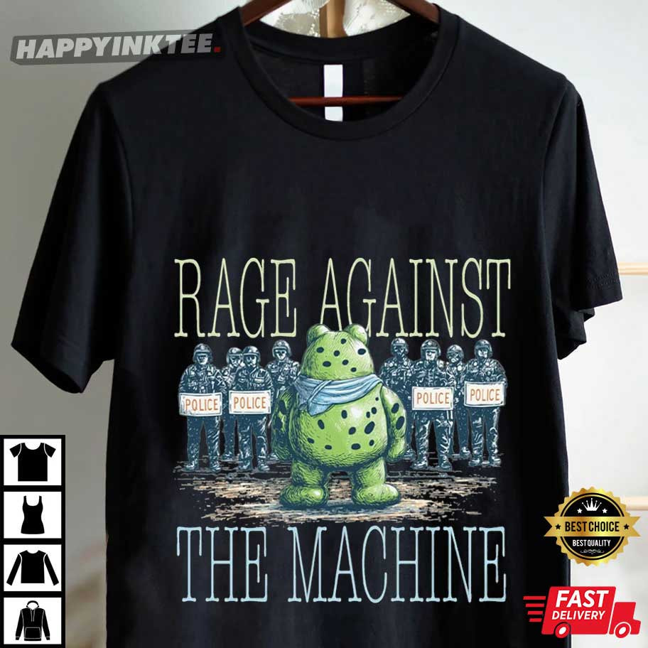 Channel the rebellious spirit of Rage Against The Machine with this Rage Against The Machine Portland Frog Protest T-Shirt.
