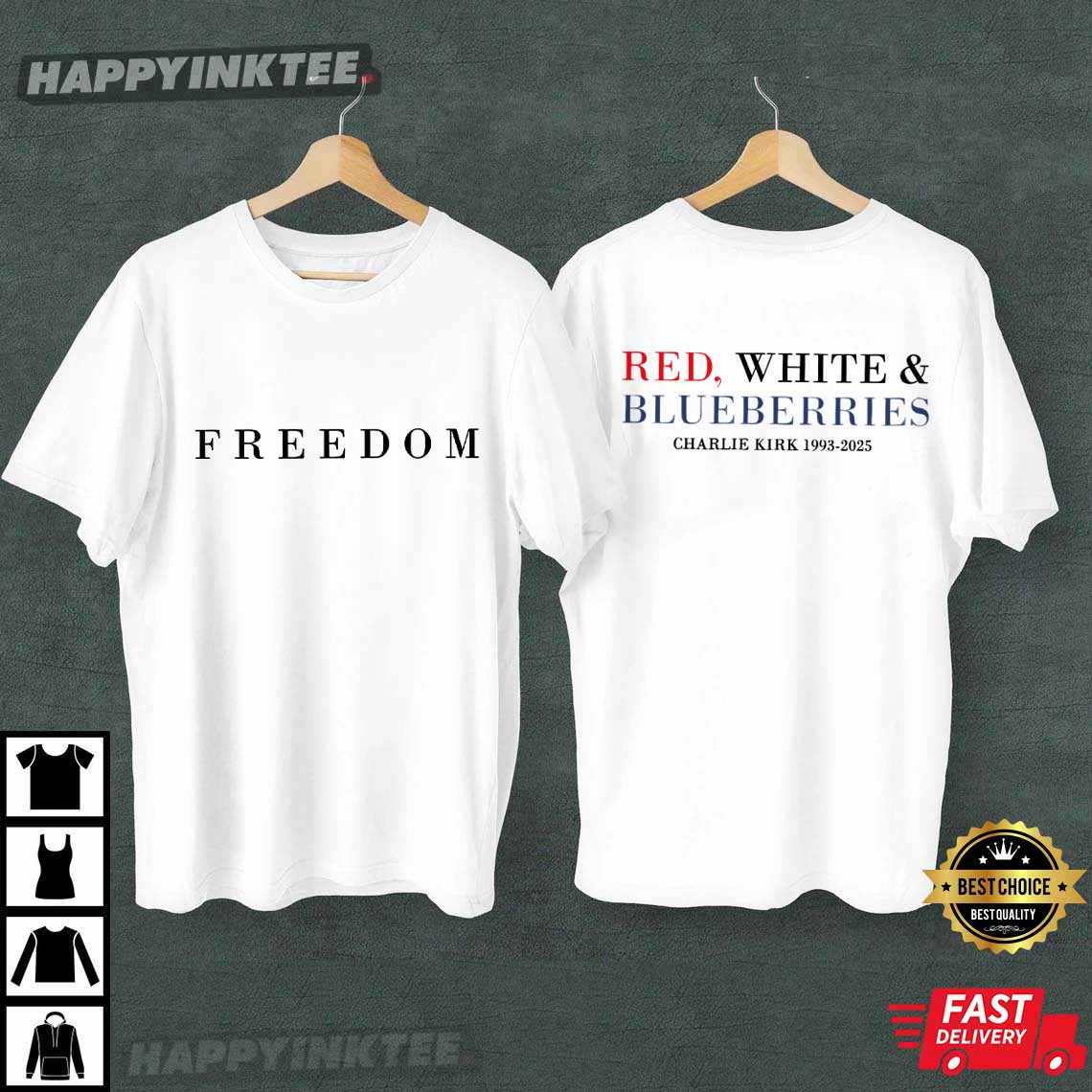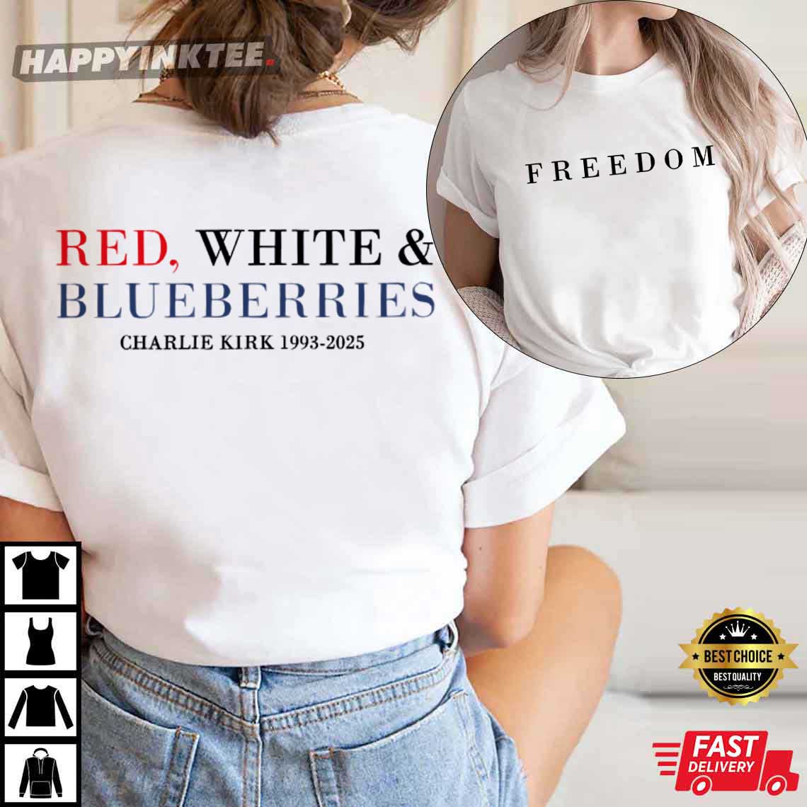 Red White And Blueberries Charlie Kirk Memorial Freedom T-Shirt – t shirt printing, custom tee shirts