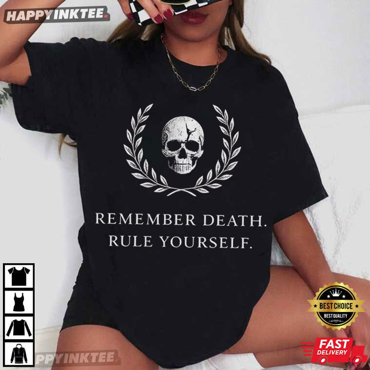 Remember Death Rule Yourself Skull Laurel Memento Mori T-Shirt – vintage graphic t shirts, unique graphic t shirts