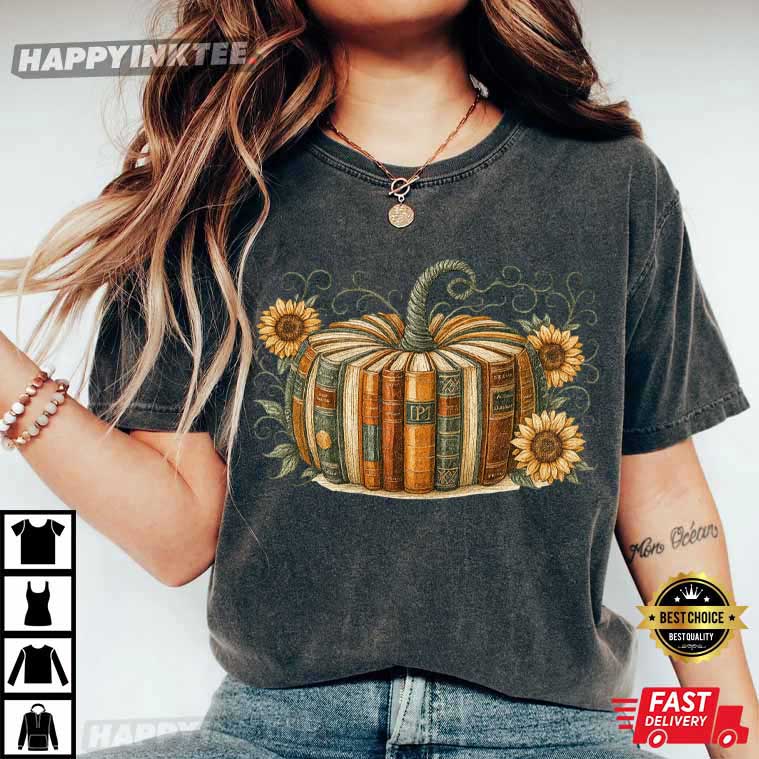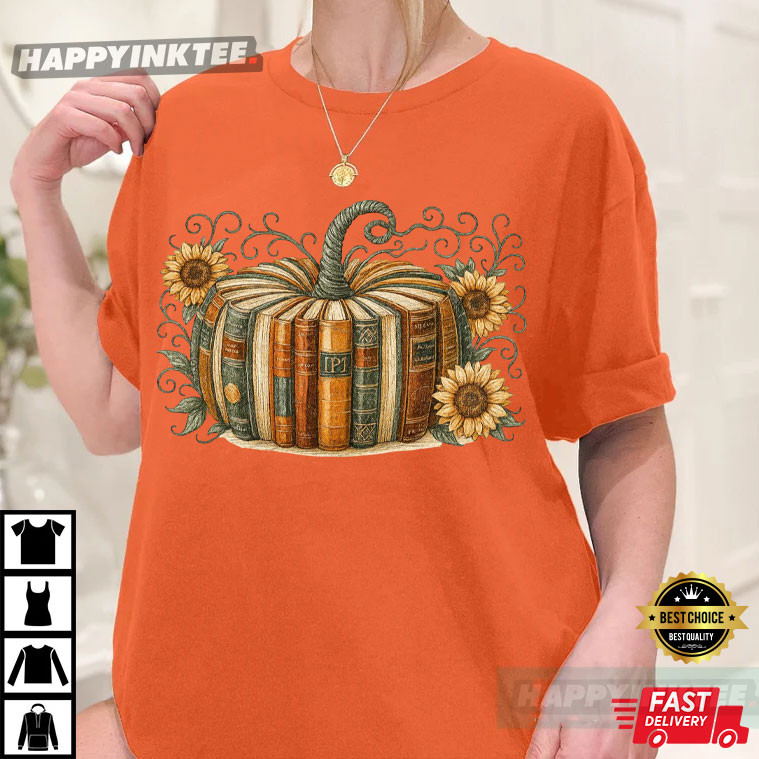 Retro Fall Book Pumpkin Halloween Teacher T-Shirt – halloween tee shirts